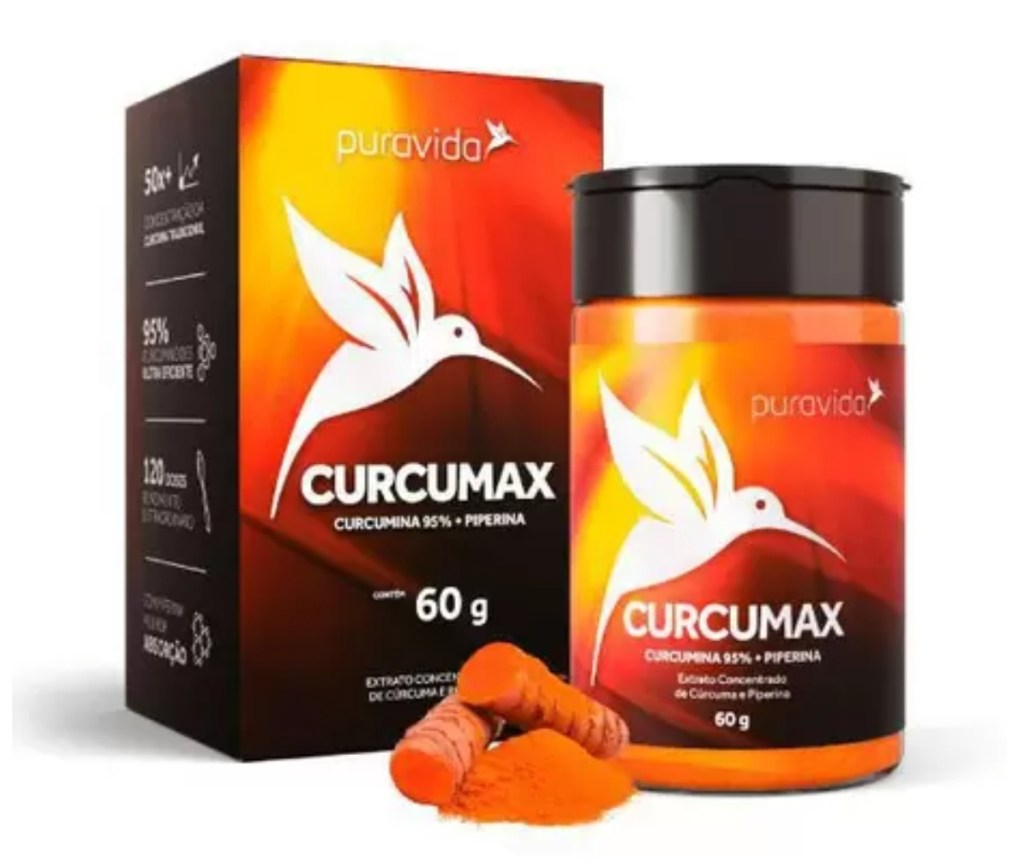 Um extrato de Cúrcuma especial não-cristalizado, obtido do suco fresco da raiz e concentrado em 50:1. Ou seja: para obter o conteúdo deste pequeno frasco, são necessários 3 kg de cúrcuma! Obtido por alta tecnologia, sem uso de solventes e associado com Piperina, uma substancia natural da pimenta preta que intensifica a absorção da curcumina em até 2000%, especialmente quando usada em conjunto de boas gorduras alimentares. Centenas de estudos científicos comprovam a importância e versatilidade da Curcumina, pelas suas propriedades anti-inflamatórias e antioxidantes potentes. BENEFÍCIOS DO EXTRATO CONCENTRADO DE CÚRCUMA E PIPERINA PARA A SAÚDE: Melhora os problemas do fígado, a sua capacidade desintoxicante e a função hepática; Aliado na prevenção e no tratamento de doenças severas; Anti-inflamatório; Reduz o colesterol; Diminui a oxidação do LDL; Inibe a agregação de plaquetas; Diminui o tamanho da trombose no infarto do miocárdio; Para quem sofre de diabetes tipo II, diminui os níveis de hemoglobina glicosilada e diminui a microalbuminúria; Diminui as crises de exacerbação na esclerose múltipla; Previne doenças como Alzheimer e Parkinson; Retarda o processo degenerativo nos casos de Alzheimer; Diminui as dores causadas pela artrite; Contribui para o controle de doenças de pele como psoríase e dermatites; Protege contra doenças inflamatórias nos olhos; Estimula a regeneração muscular; Melhora a capacidade de regenerar feridas; Protege o fígado e rins de lesões tóxicas; Aumenta a secreção e diminui a formação de cálculo biliar; Protege e ajuda a melhorar doenças inflamatórias do intestino; Protege contra a catarata; Protege o pulmão da formação da fibrose pulmonar; Eficaz no alívio dos sintomas da depressão. Existem evidências, através de estudos de que a curcumina eleve os níveis dos neurotransmissores cerebrais serotonina e dopamina; Também é popular o seu uso contra as dores de cabeça; Outros usos incluem bronquite, resfriados, infecções pulmonares, a fibromialgia, febre, problemas menstruais. SUGESTÃO DE USO Esse extrato especial é obtido através da raiz da cúrcuma e da pimenta preta que são especiarias com alto teor de óleo essencial. Por este motivo, as partículas da Curcumax podem eventualmente formar pequenos aglomerados que não alteram a qualidade e os benefícios que o produto promove. Para dissolver esses aglomerados basta agitar o pote e em seguida coletar com a colher e dissolvê-lo na bebida de sua preferência; É muito simples acrescentar o extrato concentrado de curcumina e piperina em seu dia-a-dia. Você pode simplesmente polvilhar suas refeições, adicionar em sua sopa ou feijão, temperar a salada ou acrescentar à sua bebida favorita. Como ela é lipossolúvel, recomenda-se expressamente que haja presença de gordura natural (como coco, abacate, manteiga ou azeite) na mesma refeição; Você também pode acrescentar a cúrcuma com pimenta (piperina) em sua receita de Bullet Coffee, ou mesmo em sua receita de Golden Milk (potencializando suas características); A dosagem recomendada é de 500 mg (1/4 colher de café). Cada frasco de Curcumax possui 120 doses! Use diariamente para colher seus benefícios; Conserve em local seco e fresco. INGREDIENTES: EXTRATO DE CÚRCUMA E EXTRATO DE PIPERINA. NÃO CONTÉM GLÚTEN.
