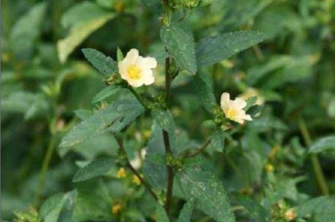 Planta perene subarbustiva ereta, com 30 a 70 cm de altura. Raiz muito desenvolvida, axial. Caule cilíndrico com pilosidade simples, estrelada, alvo-translúcida e estipulas linear-lanceoladas. Folhas simples, alternas, rômbicas ou oblongo-rômbicas, de bordos dentados e ápice obtuso, com nervura principal e secundária salientes. inflorescência em umbela ou congesta. Flores andróginas, com corola de 5 pétalas amarelas. Tubo estaminífero de 4 cm de altura, ovário súpero de 10 a 14 carpídios trigonos. Planta invasora, propaga-se exclusivamente por semente. Prefere solos ácidos e ensolarados [1].